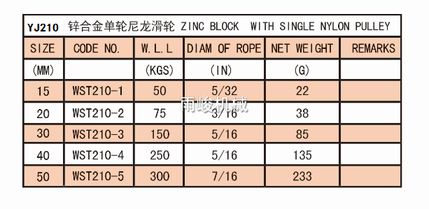 • YJ210 鋅合金單輪尼龍滑輪