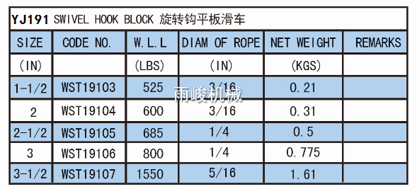 • 產(chǎn)品描述:該款滑輪有很多款式,有平板旋轉(zhuǎn)環(huán)的,旋轉(zhuǎn)鉤的,固定環(huán)的,也有平板平座可以固定的,尺寸小,靈活,從1-1/2”到5寸,拉力從525 LBS到1900 LBS,可以適用于很多小噸位的起重作業(yè)工作。于澳洲和美洲的牧場(chǎng)上,有廣泛應(yīng)用。