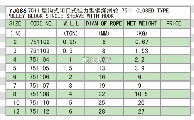 • YJ086 7511型鉤式閉口式強力型鋼繩滑輪