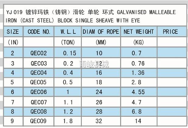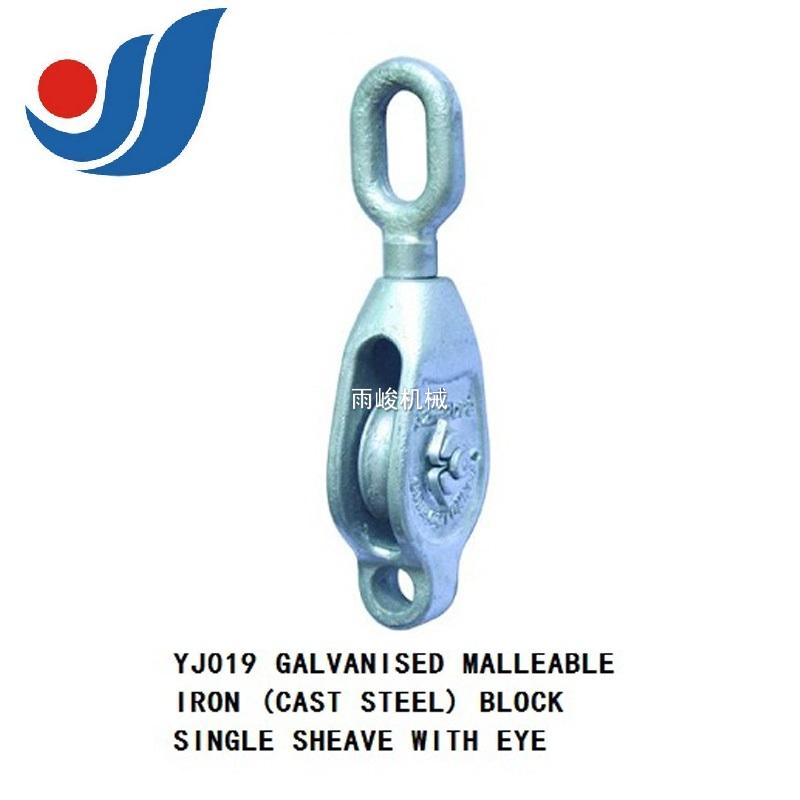 YJ019 GALVANISED MALLEABLE IRON (CAST STEEL) BLOCK SINGLE SHEAVE WITH EYE