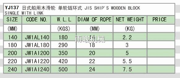 • YJ137 JIS SHIP'S WOODEN BLOCK SINGLE WITH LINK