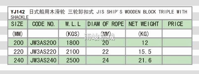 • YJ142 JIS SHIP'S WOODEN BLOCK TRIPLE WITH SHACKLE