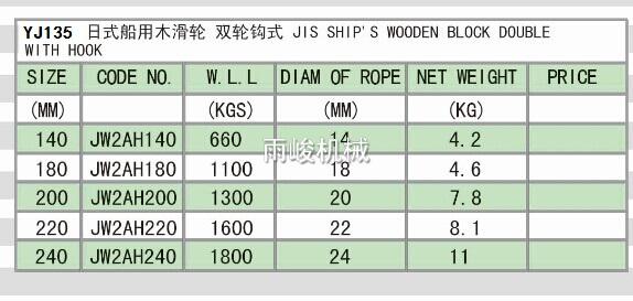 • YJ135 JIS SHIP'S WOODEN BLOCK DOUBLE WITH HOOK