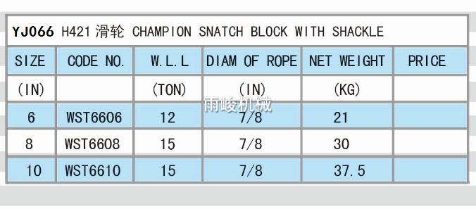 Y066 H421 CHAMPION SNATCH BLOCK  WITH SHACKLE
