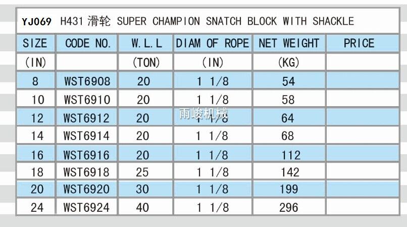• YJ069 SUPER CHAMPION SNATCH BLOCK WITH SHACKLE