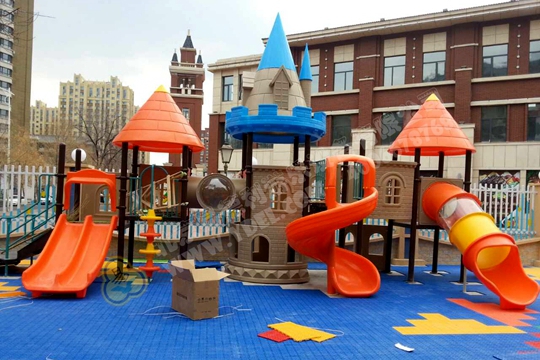 幼兒園戶外組合滑梯由以下配件組合而成,因此得名組合滑梯:門、過橋、滑筒、頂子、爬梯、扶手、臺板、....