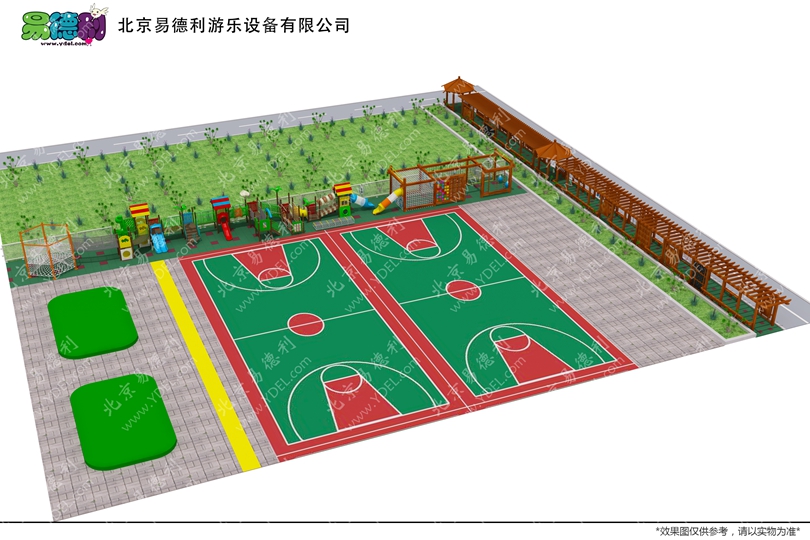 整體規(guī)劃建設(shè),包含地面、廊架、話題、木質(zhì)拓展訓(xùn)練組合。