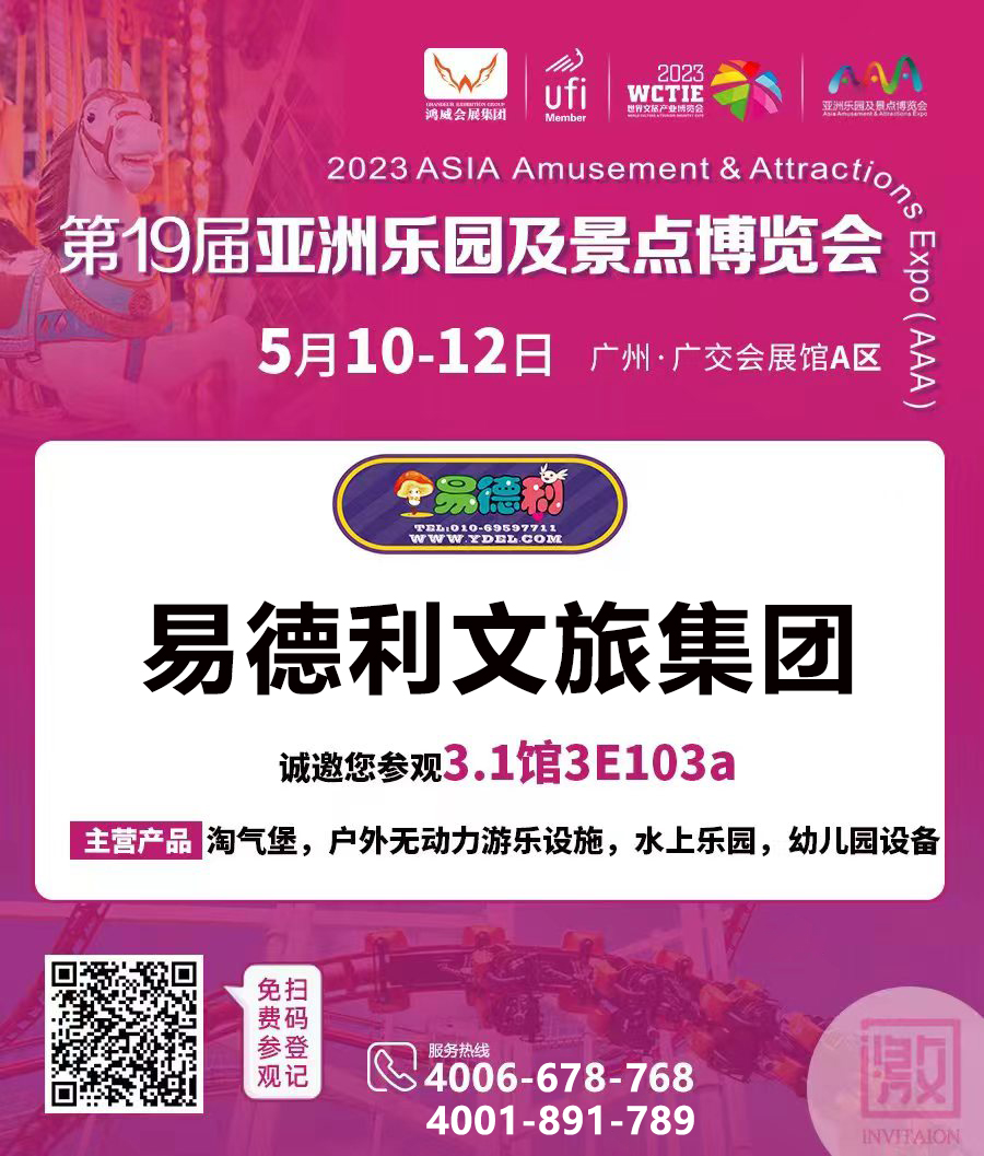 第19屆亞洲樂園及景點博覽會將于2023年5月10日-5月12日廣州廣交會展館舉辦,易德利文旅集團為無動力兒....