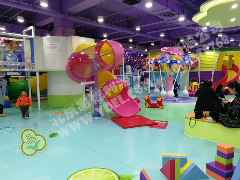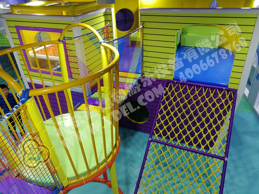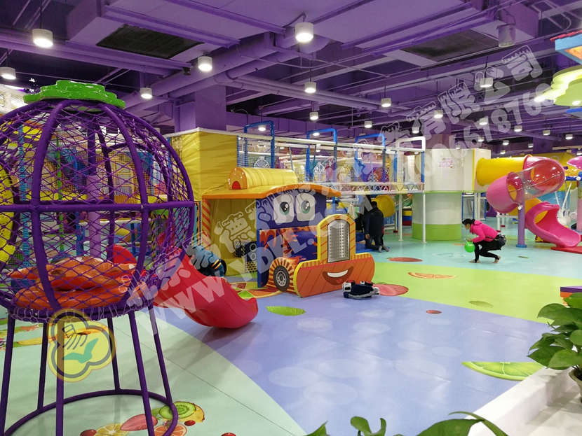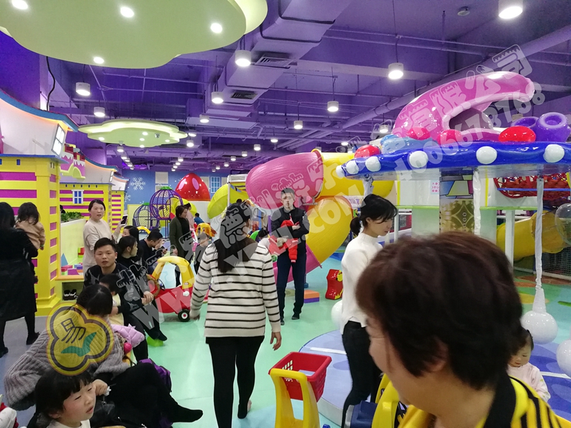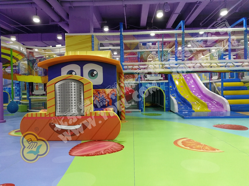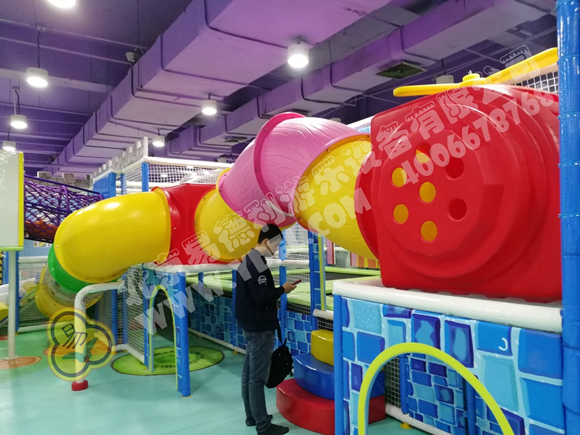 這是園內(nèi)的明星區(qū)域“童童夢夢歷險記”超酷主題區(qū)。里面布置有積木類、淘氣堡、繩網(wǎng)類、運動蹦床、騎乘小車等各類游樂設(shè)備。而從現(xiàn)場觀察所得,這里也是人氣最鼎盛的一個區(qū)域,很多小孩子都在這個區(qū)域久久停留,不肯離去;家長們也紛紛入內(nèi),與孩子們親密互動,好一片溫馨的親子氛圍。