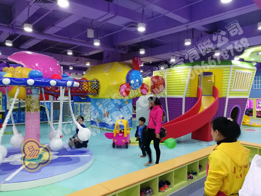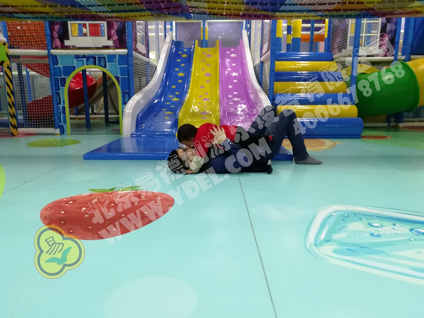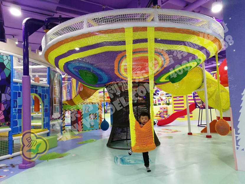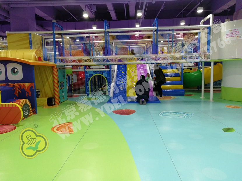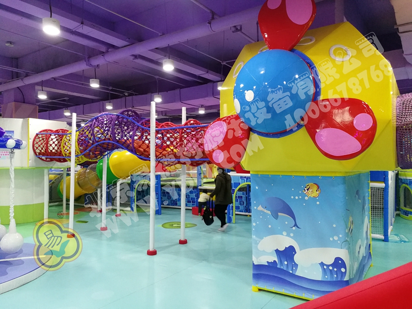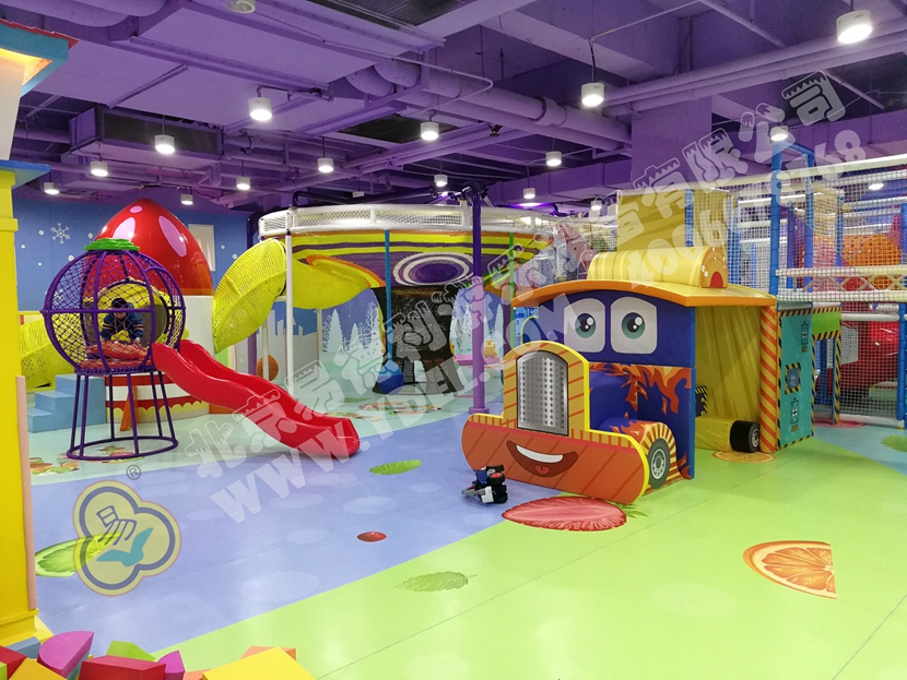 這是園內(nèi)的明星區(qū)域“童童夢夢歷險記”超酷主題區(qū)。里面布置有積木類、淘氣堡、繩網(wǎng)類、運動蹦床、騎乘小車等各類游樂設(shè)備。而從現(xiàn)場觀察所得,這里也是人氣最鼎盛的一個區(qū)域,很多小孩子都在這個區(qū)域久久停留,不肯離去;家長們也紛紛入內(nèi),與孩子們親密互動,好一片溫馨的親子氛圍。