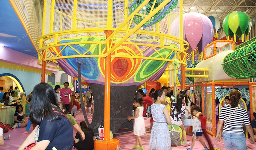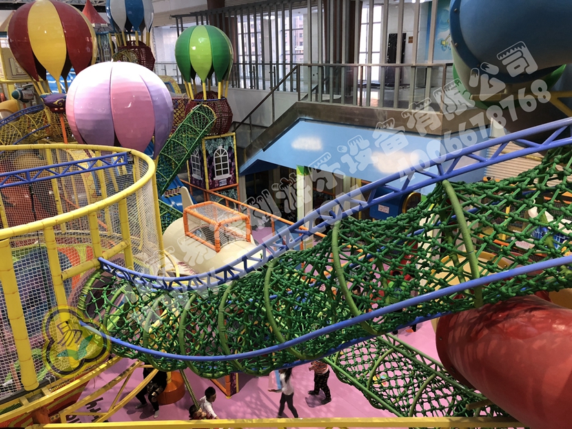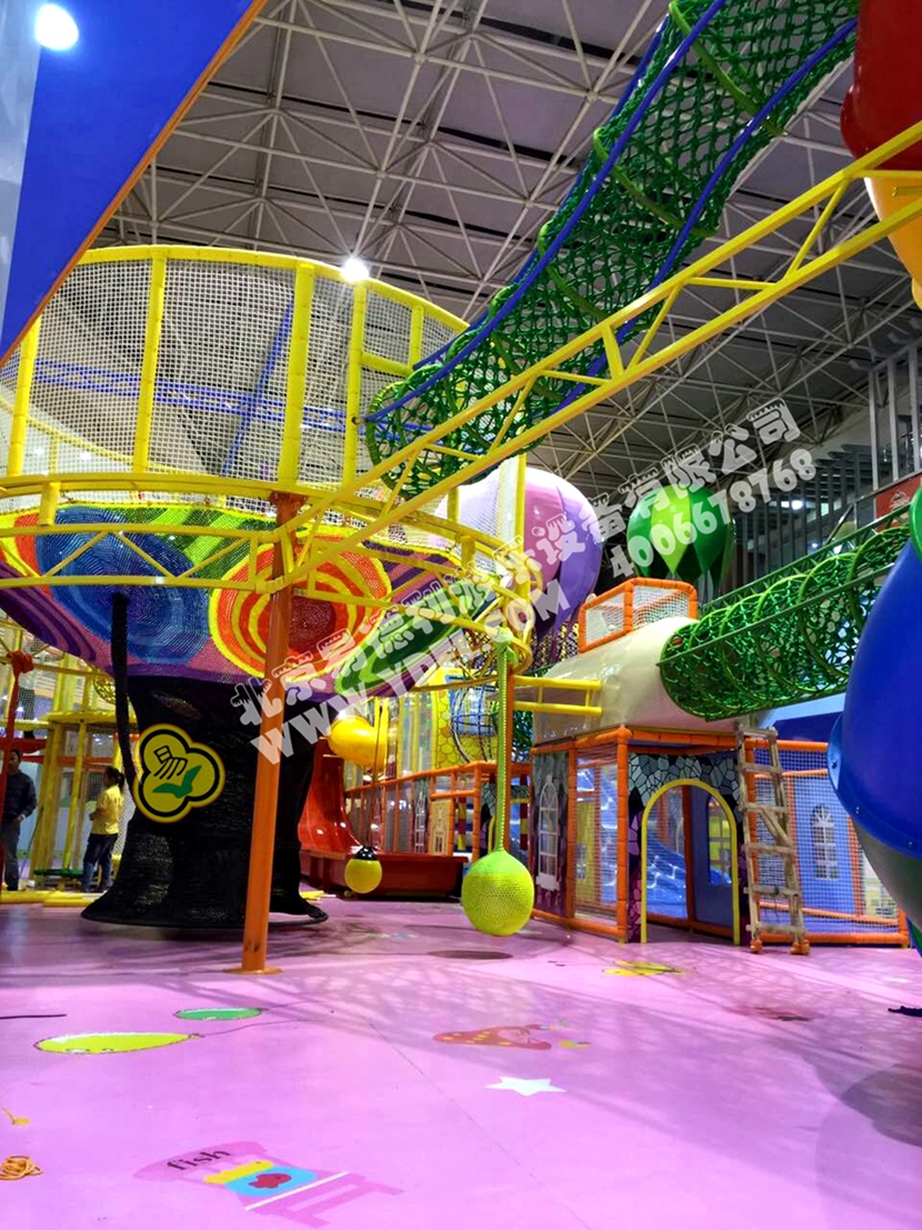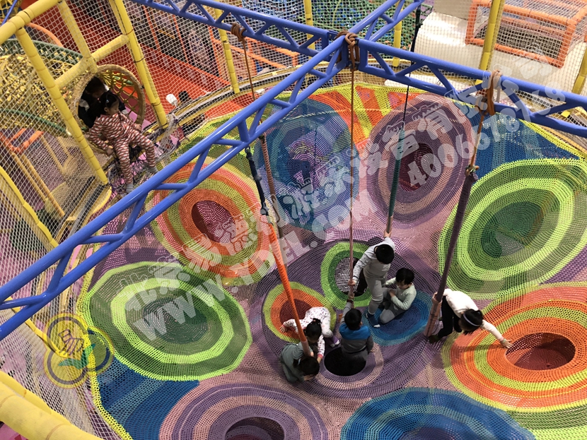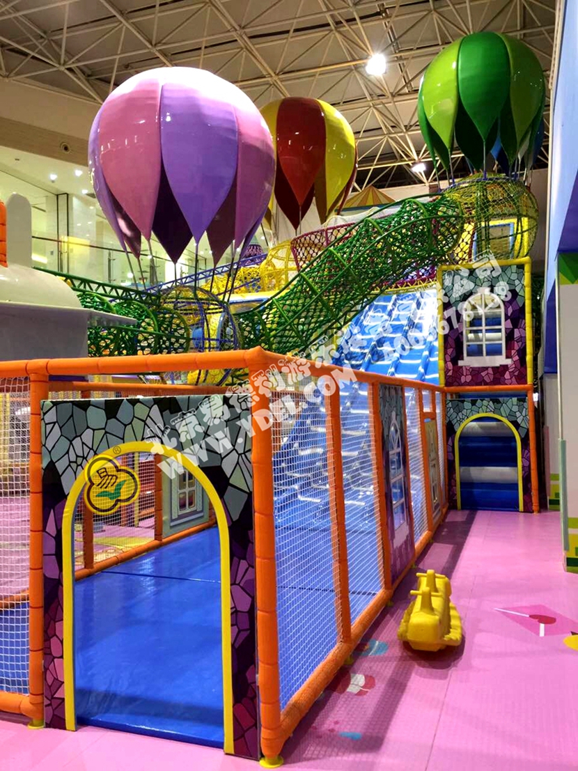 分兩個(gè)區(qū)域:淘氣城堡和闖關(guān)區(qū);這個(gè)項(xiàng)目集成了多種新產(chǎn)品及設(shè)計(jì)理念,我們的設(shè)計(jì)人員與安裝人員是功不可沒(méi)的!下面我?guī)纯催@些新奇好玩的游樂(lè)設(shè)備!