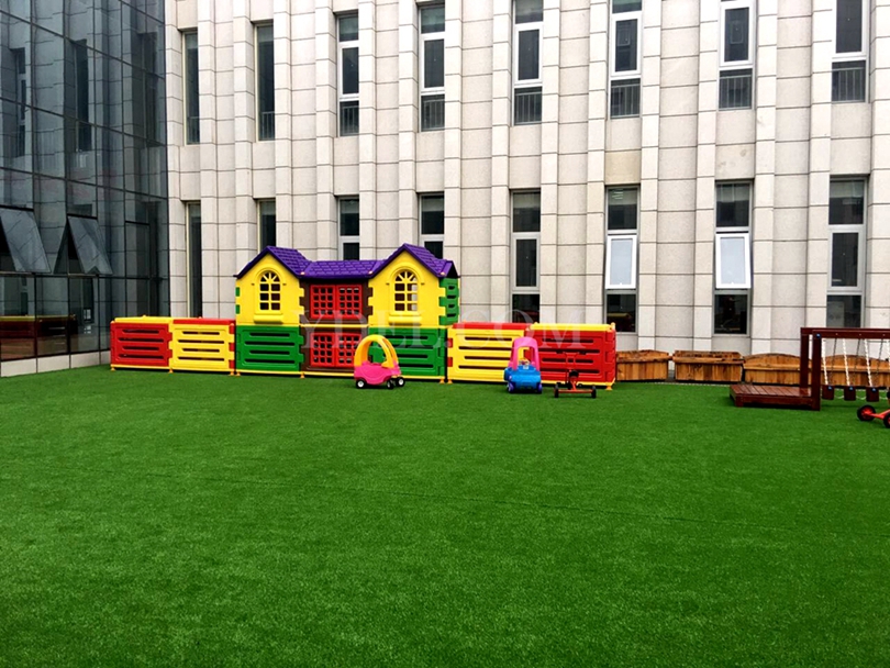 北大培文幼兒園城堡滑梯大門兩側(cè)依次擺開,中間空中網(wǎng)龍連接,進(jìn)大門就氣場全開,吸引不少眼球;小屋造型塑料收納柜,常年不褪色,堅(jiān)固耐用。
