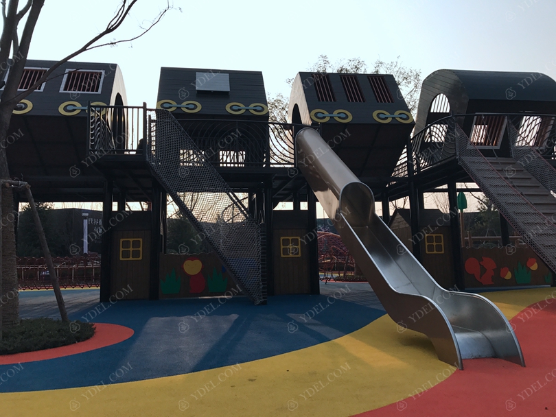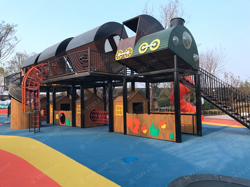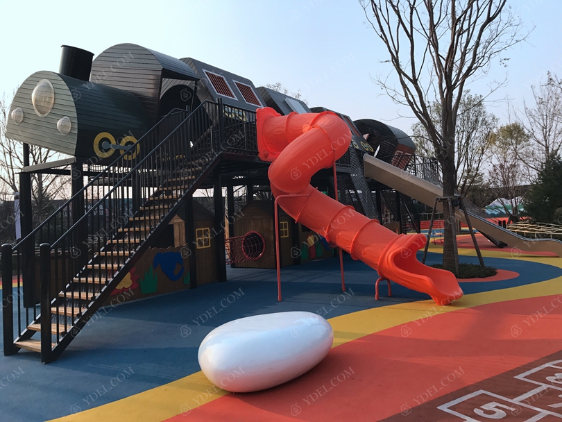 新穎的火車造型滑梯富含多游樂功能,微地形攀爬設施,創(chuàng)意造型滑梯等