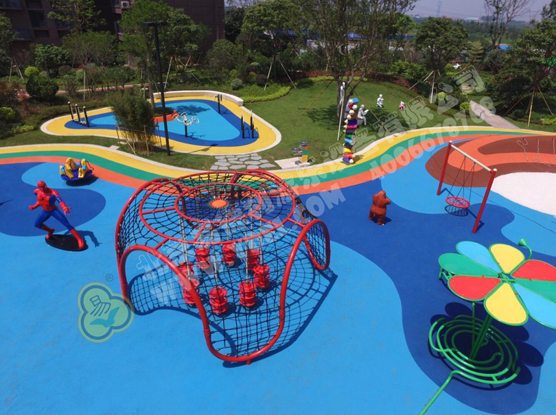 一眼望去,最引人注目的定是這紅色攀爬網(wǎng)。每個孩子的心中都住著一個“蜘蛛俠”,希望能像蜘蛛俠一樣在爬網(wǎng)上穿梭自如。