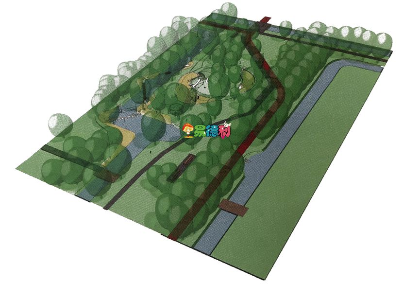 松或是舉行家庭小聚會。為了充分利用這個區(qū)域以及增強(qiáng)公園的可達(dá)性,自然人行道、教育性道路、跑道以及冒險道在入口處以及整個區(qū)域