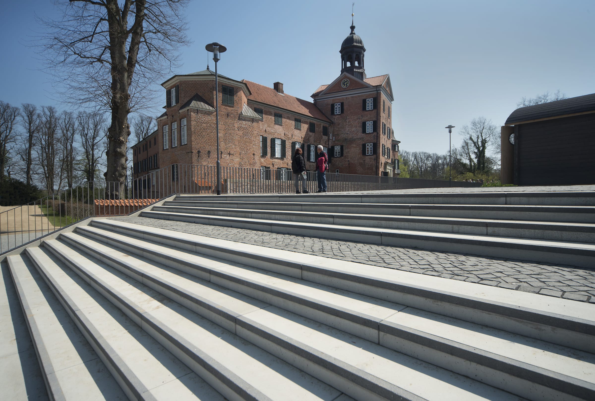 Eutin’s historic building yard has been one of the city’s significant cultural locations. Both the Opern- scheune (opera barn) and the outdoor stage situated directly by the lake serve as venues for the city’s annual opera festival. The construction of a youth hostel has given the grounds a practical function all year long. The two historic gatehouses together with the cubature of the youth hostel create a three-sided forecourt – framed by rose beds and benches under old trees – with a view over the lake. The design of the square combines the buildings into a picturesque ensemble while the roses embrace Eutin’s gardening tradition. The grounds create new path linkages west to the Schlossgarten and east to the new Southshore Park, which can be reached over meadows traversed by the reopened Lindenbruch- graben (lime-tree ditch). The development of single-family homes is planned for the medium term. The unobtrusively designed landscape of meadows, including a playground, remains as a new, local, publicly accessible recreational area, which creates an urban development framework while offering attractive surroundings for the planned development.