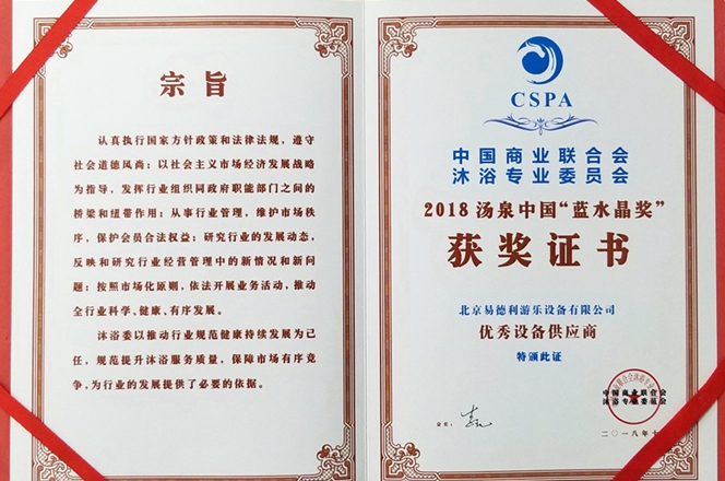 2018湯泉中國“藍(lán)水晶獎”